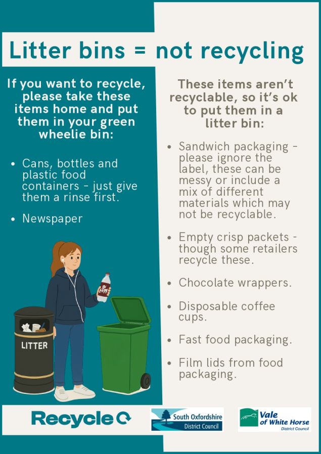 The council is calling on residents to change the way they deal with litter on the go. Up to 70% of the things that are put in public litter bins could be recycled if taken home. Unfortunately, once recyclables are mixed with food waste and other rubbish in litter bins they can’t be recycled and must be thrown away.